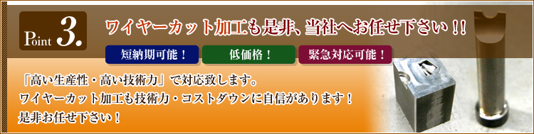 ワイヤーカット加工も短納期・低価格・緊急対応が可能となっております!
