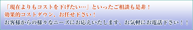 「現在よりもコストを下げたい…」といったご相談も是非!効果的コストダウン、お任せ下さい!