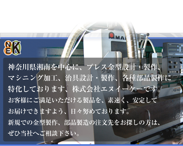 プレス金型の設計・製作、治具、機械加工なら神奈川県湘南のエヌイーケーでは、